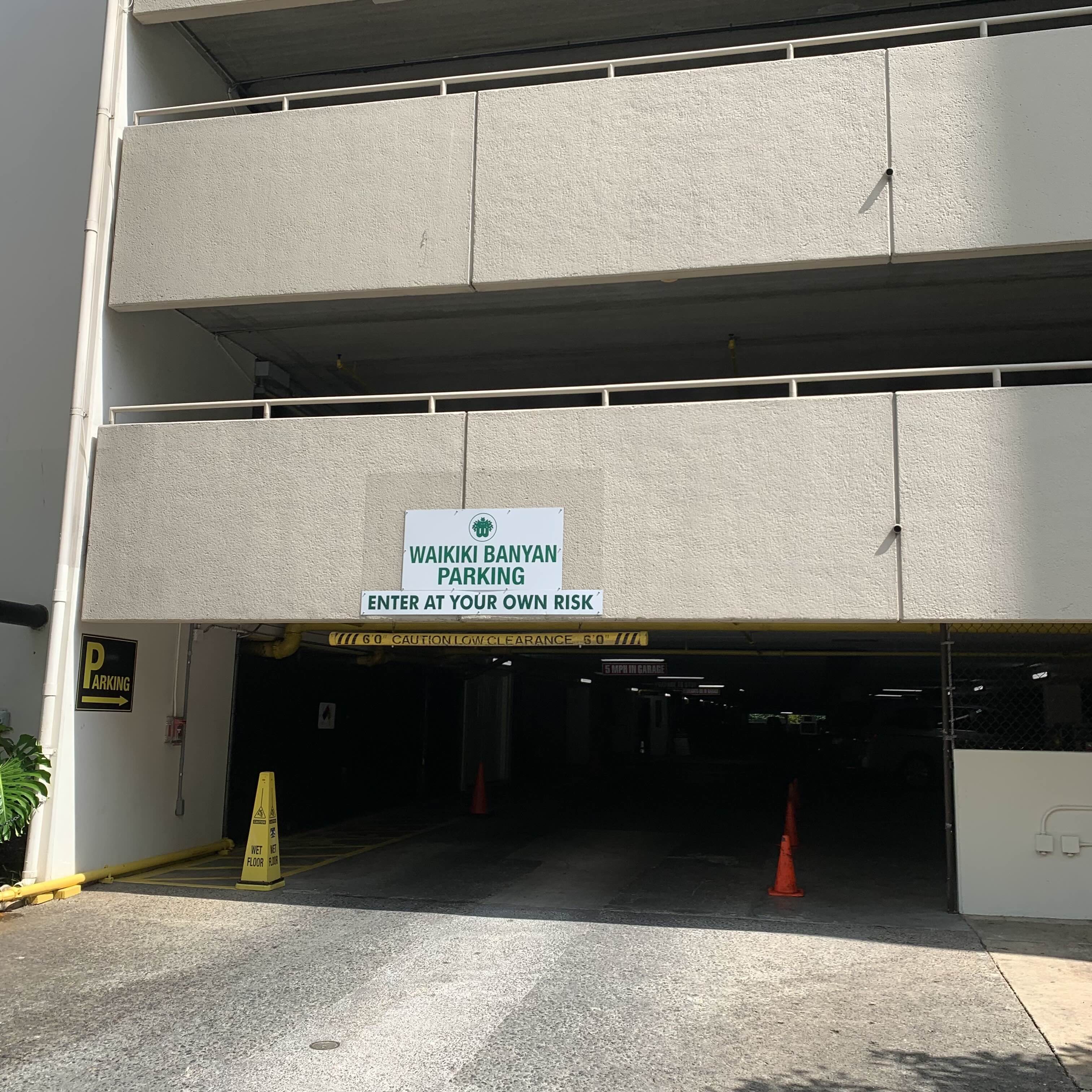호텔에 가족들과 짐을 내리고 나 홀로 반얀 주차장에 방문하니 입구에서 문지기가 막는다. 1주일에 240불을 선결제하니 엄지와 새끼를 들며 "알로하"를 외치며 반겨주고 입장시켜 준다. 오전에 방문하니 저층에 주차자리가 여유 있었다.