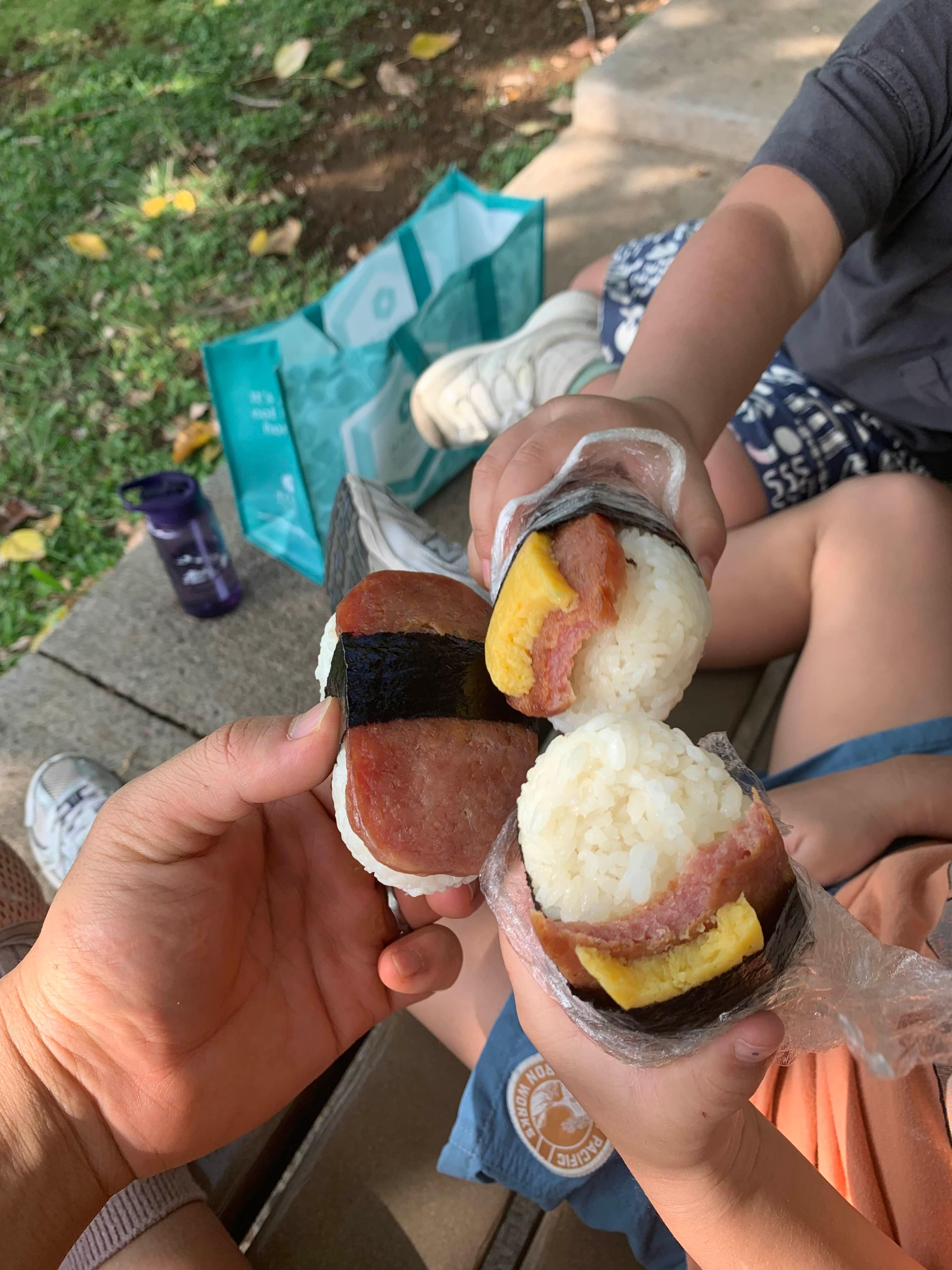 무스비 짠! 하고 다 같이 땀 흘리고 맛난 아침식사를 했다. 방문자센터에 쉴 수 있도록 잘 가꾸어져 있어서 편하게 먹을 수 있다.