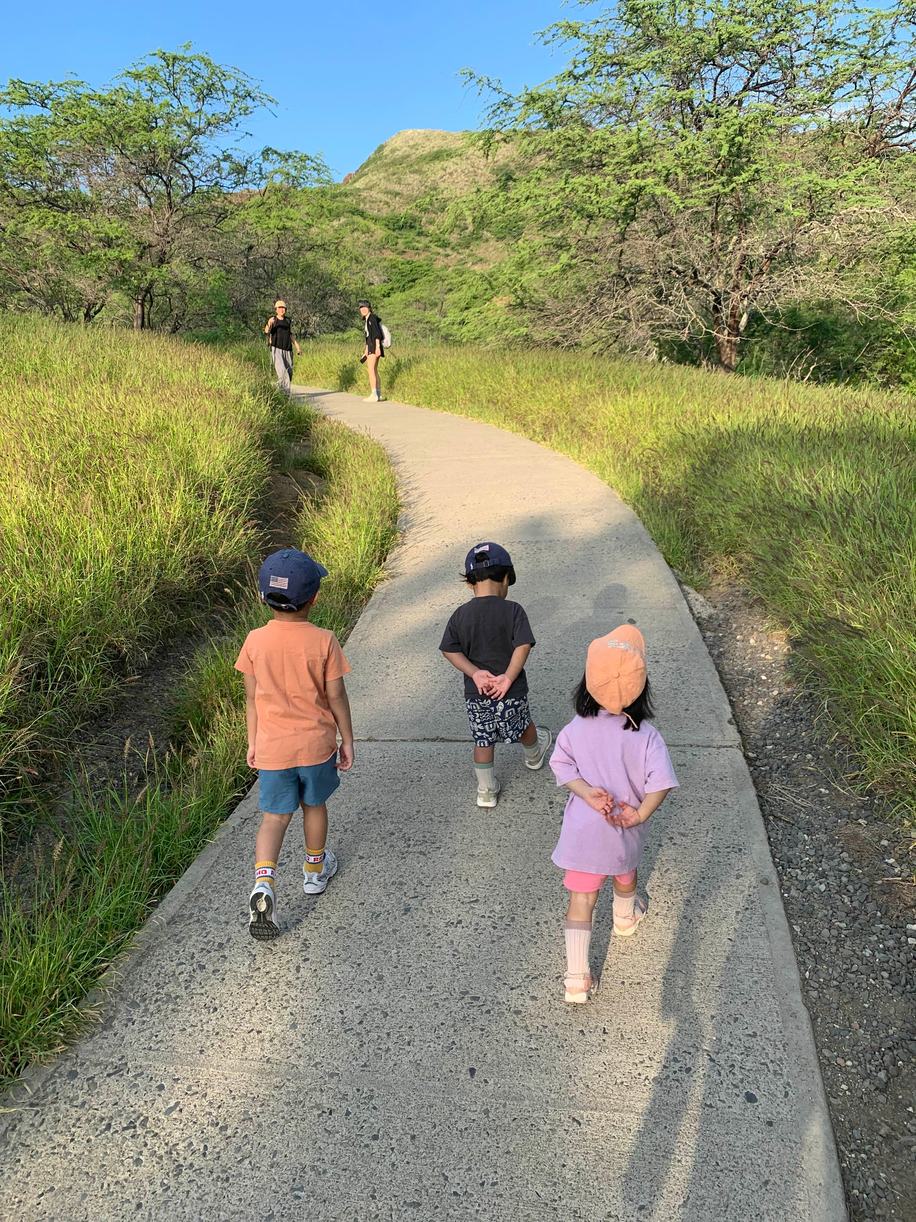 하와이에 도착해서 첫날은 시차적응과 빠른 체크인 실패로 자정까지 저녁시간이 되어서 아이들이 살아났다. 둘째날 다이아몬드헤드를 8시로 예약해서 가야 하기에 강제 취침, 강제 기상하여 일정대로 진행했다.