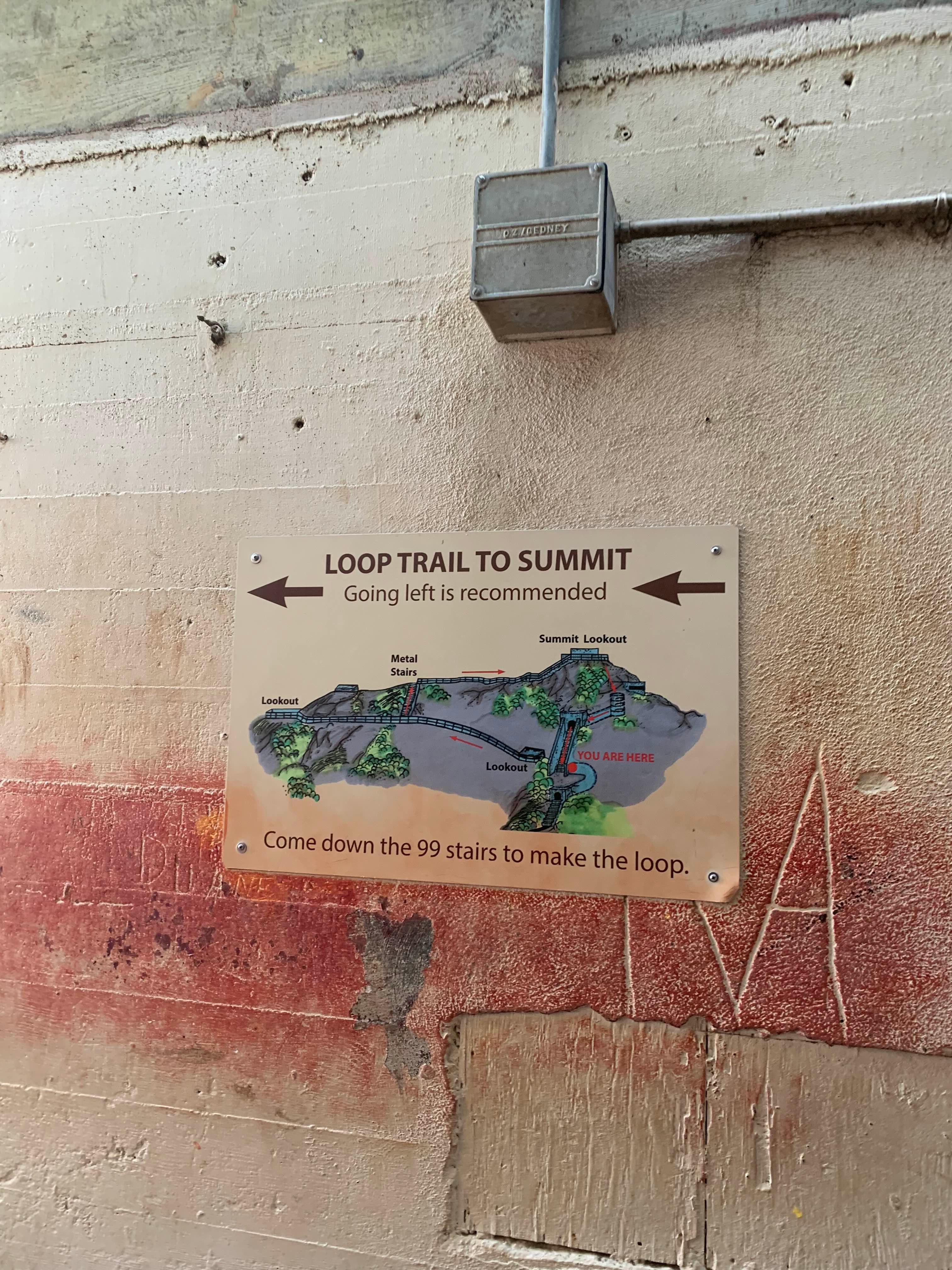 중간쯤 동굴을 통과하면 만나는 이정표. 여기서부터는 계단으로 올라가면 된다.