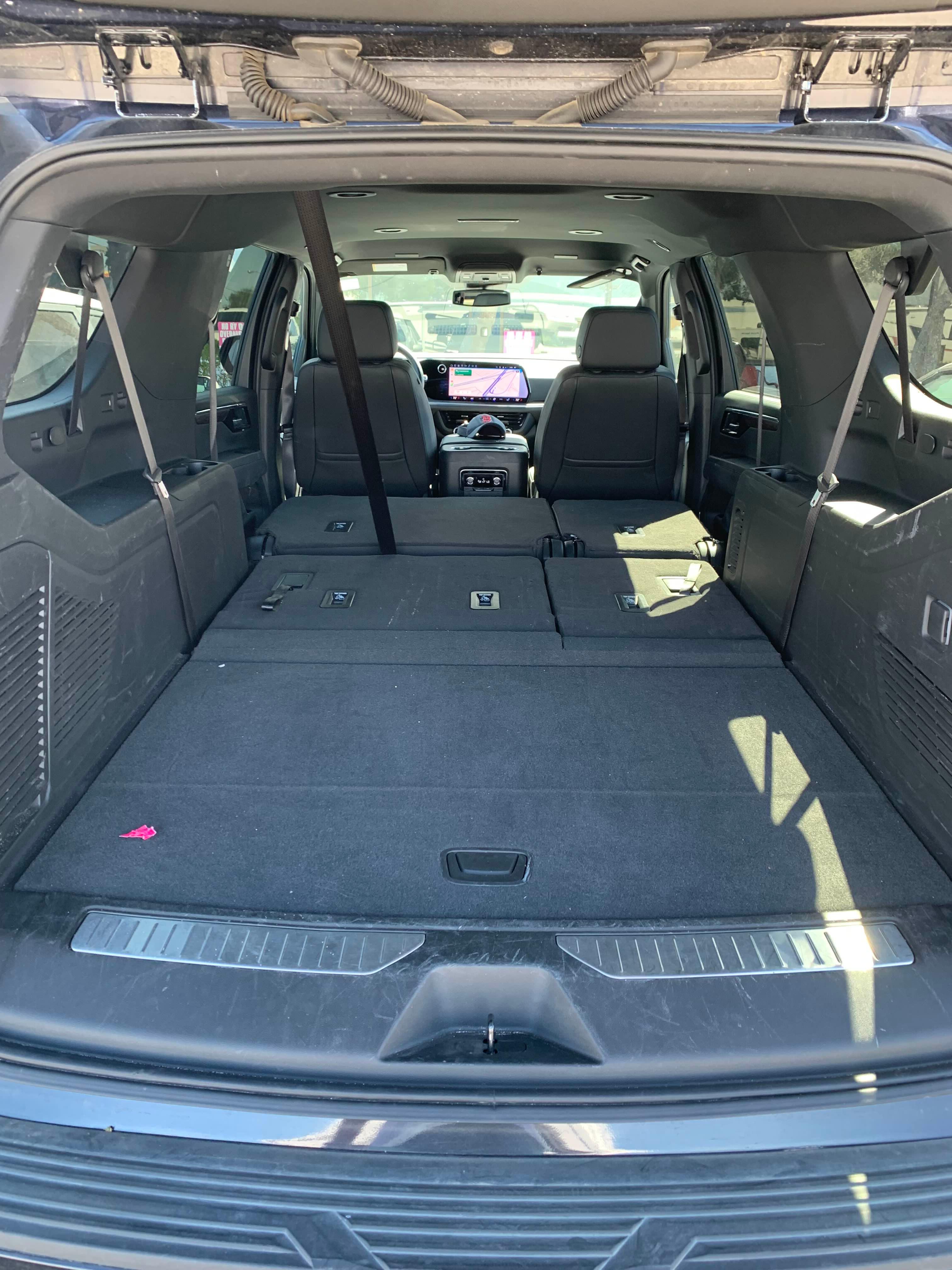 3열 펴졌을 때, 2,3열 폴딩 했을 때 공간이 상당히 차이 난다. 3열만 접어도 짐은 여유 있게 다 들어갔다.