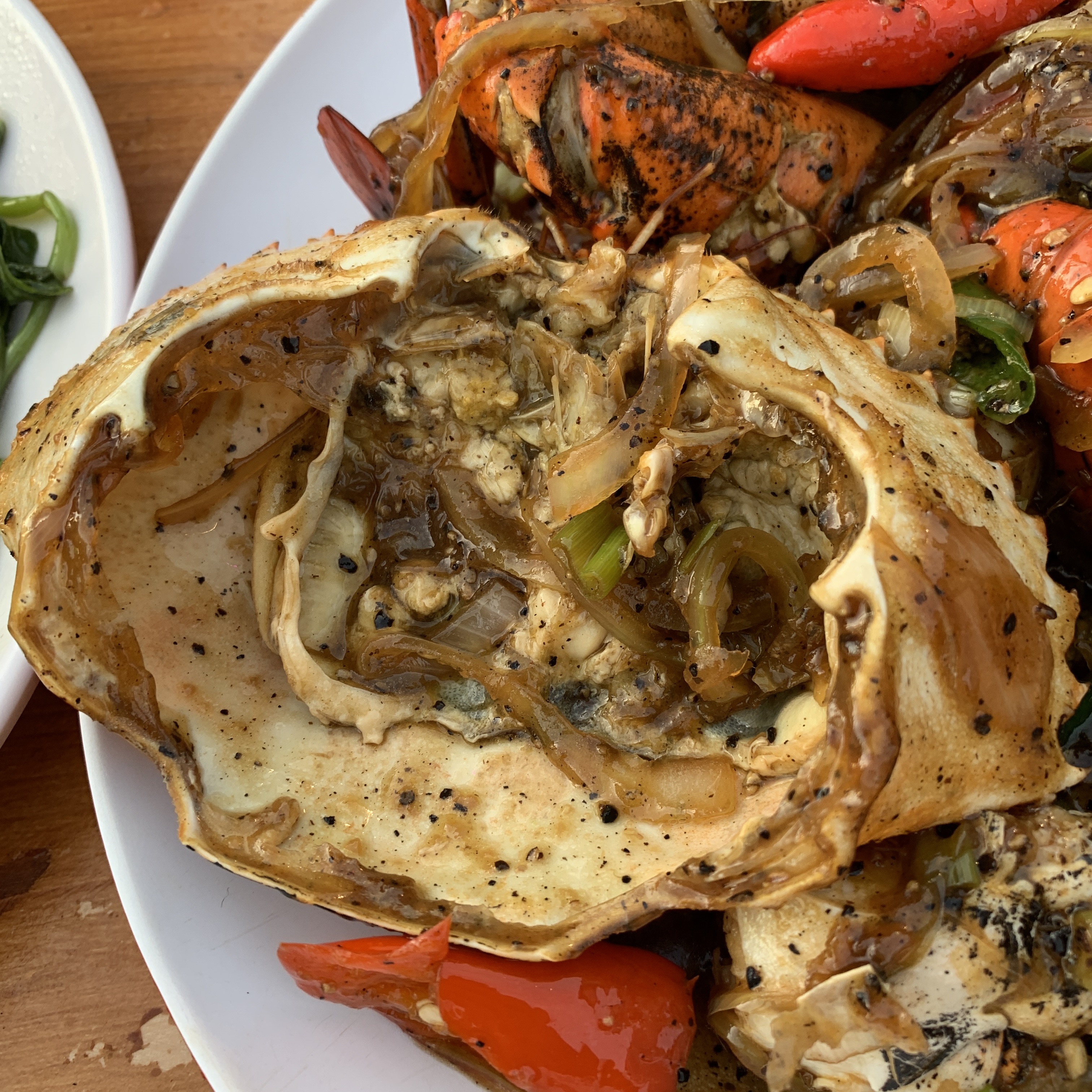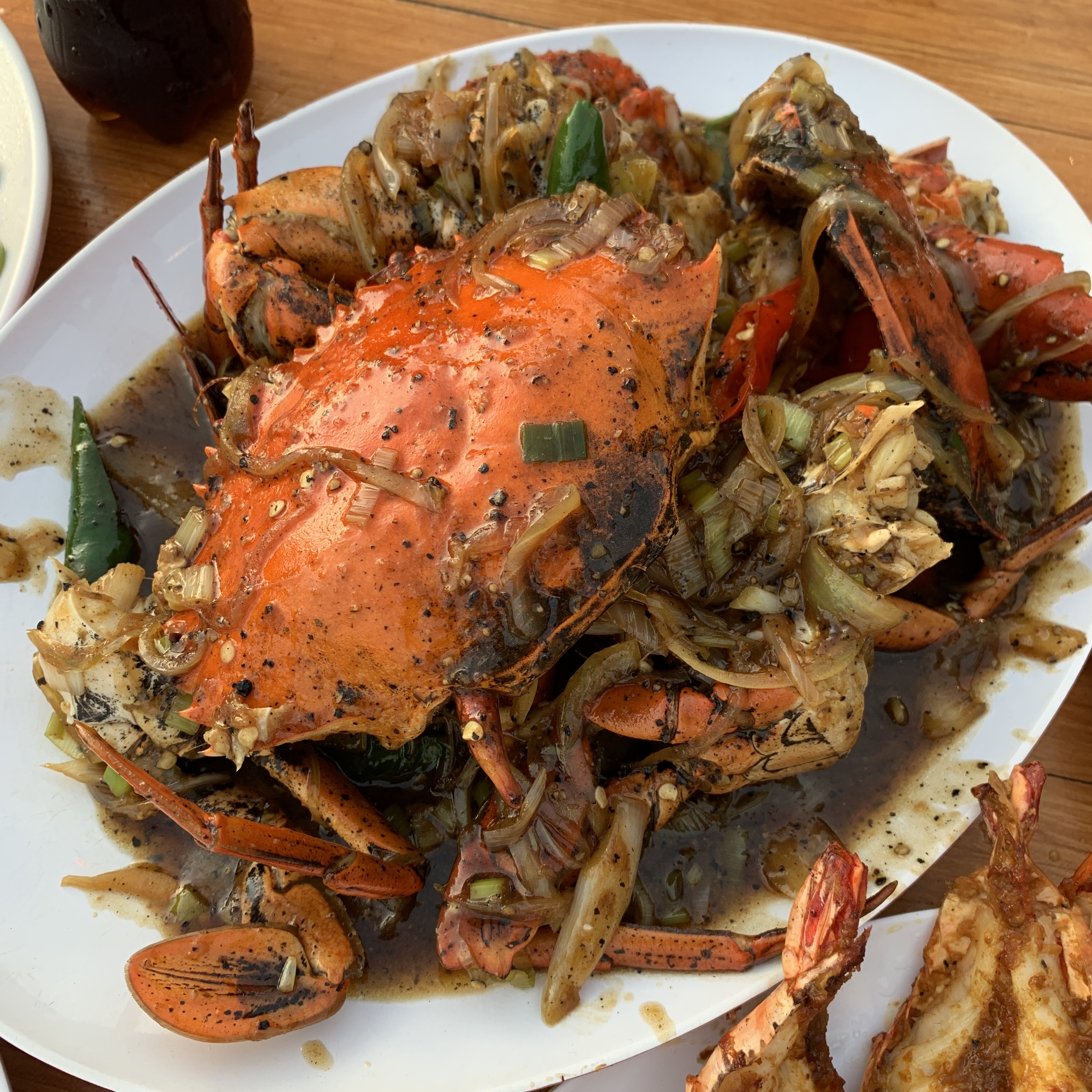 블랙페퍼크랩 1kg. 두 마리가 들어갔다. 다음에 pandan sari cafe 해산물 가게에 가서 똑같이 크랩 1kg를 시켰는데 그곳에서는 한 마리만 나왔다. 와이프가 직접 무게 재는 걸 확인했는데 그곳에서는 1마리에 1kg가 나왔다. 느낌은 둘이 크기는 비슷했다.