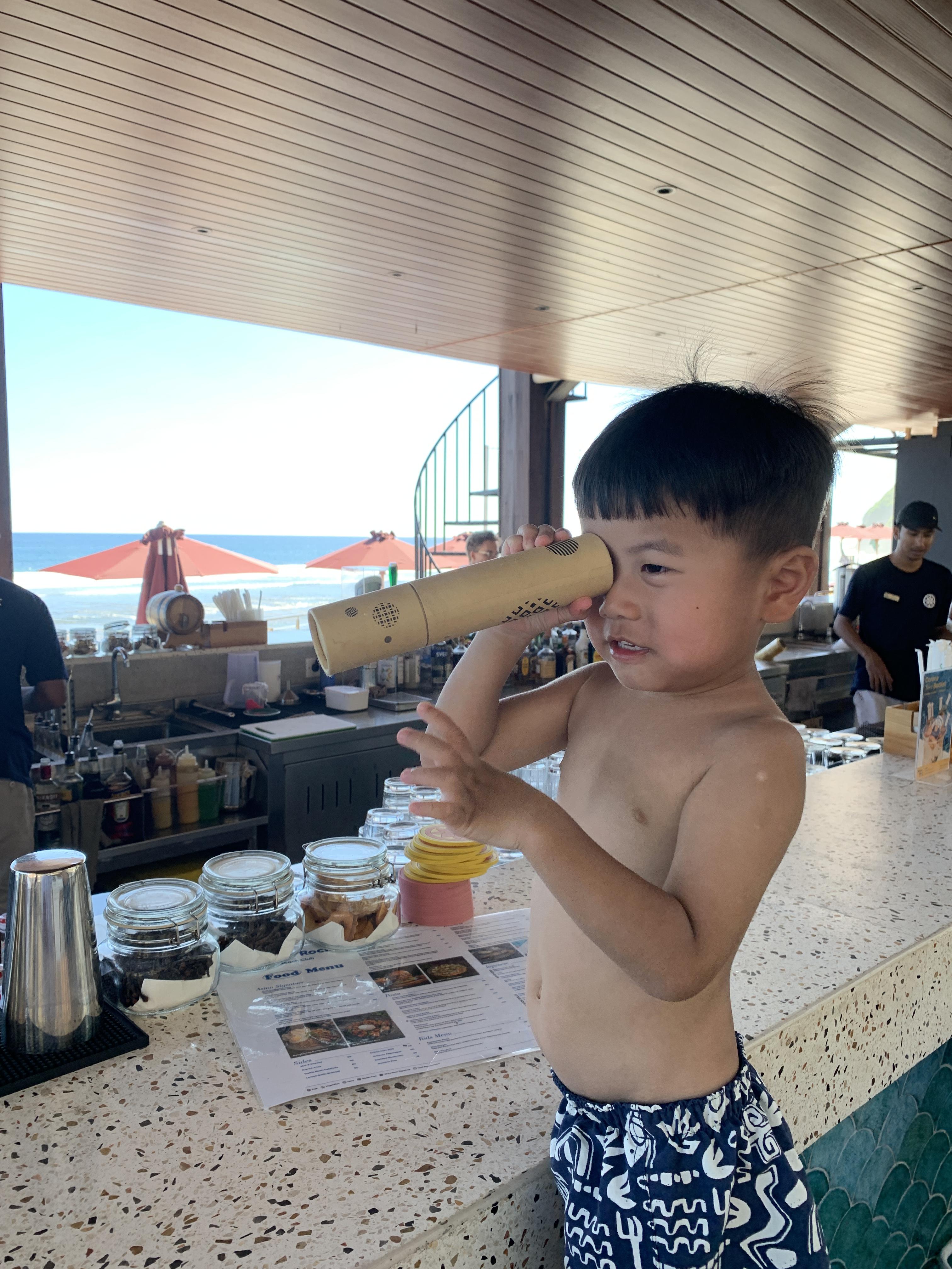 바에서 아이들과 편하게 놀 수 있는 아름다운 비치클럽이다