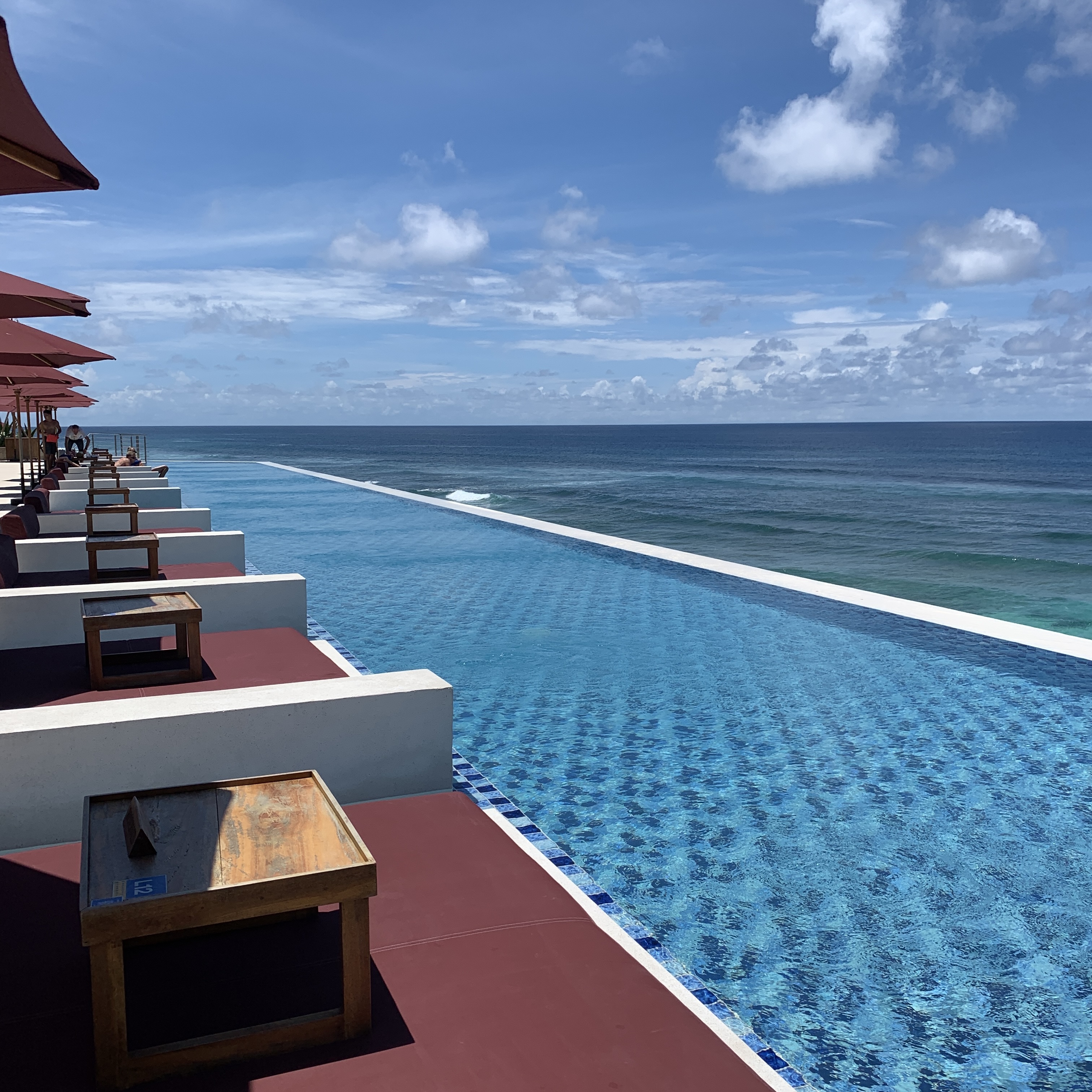 둘째날은 라군배드. 첫째날 담당 매니저한테 이야기해서 다음날도 올테니 라군배드 50% 할인된 가격으로 제공해달라고 하니 흔쾌히 알았다고한다. 그렇게 2,500,000루피아의 절반가격으로 라군배드에 머물렀다.신상비치클럽이고 아직 사람들이 많이 붐비지 않아서인지 그렇게 해주었나 싶다. 메인풀 바로 앞이라 물에 왔다갔다하기 정말 좋다.