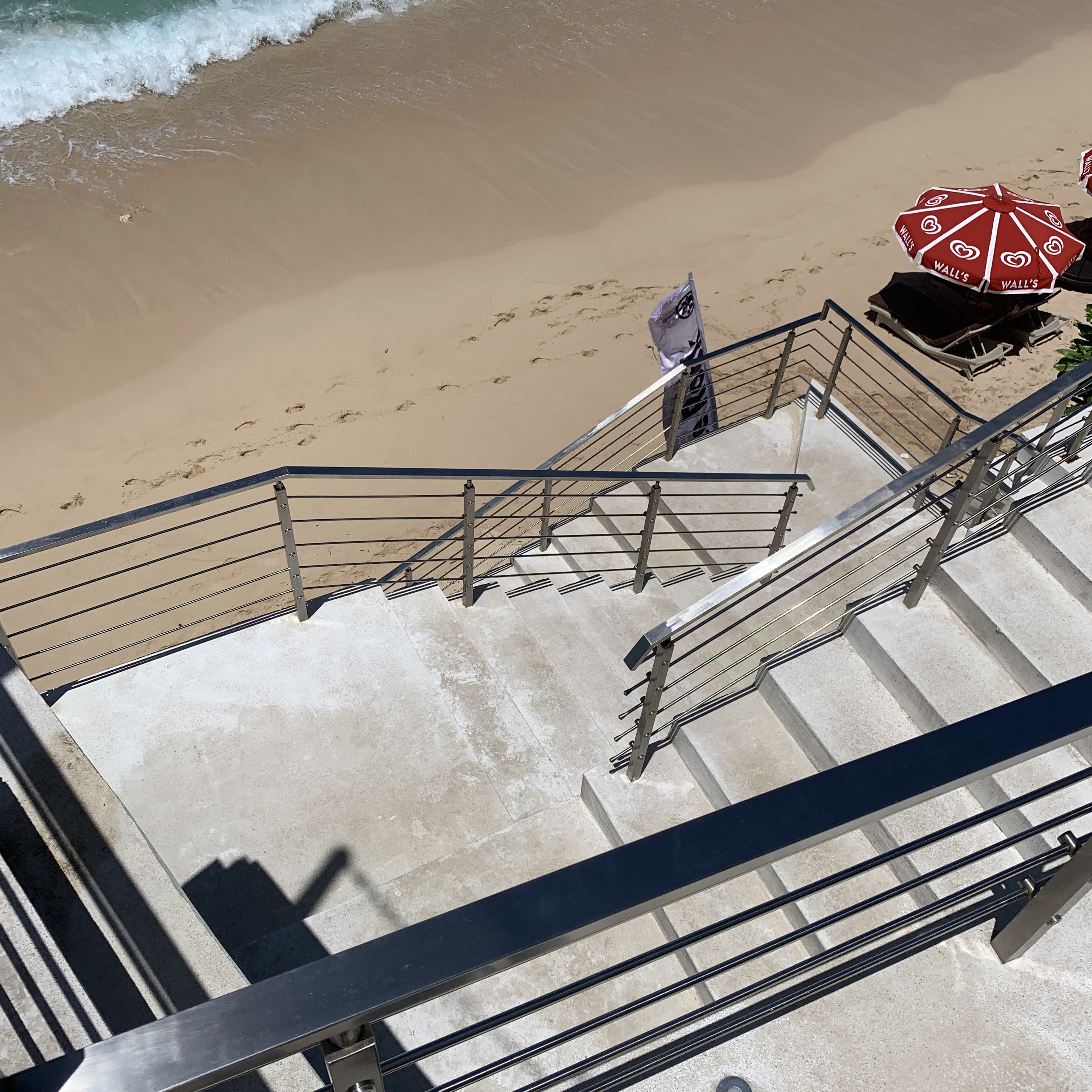 우리 자리 바로 옆에는 해변으로 갈 수 있는 계단이 있다. 샤워기가 구비되어 있어 바닷물에서 수영하고 와도 비치클럽으로 들어왔을때 바로 샤워하고 들어올 수 있는 편리함까지 갖추었다.